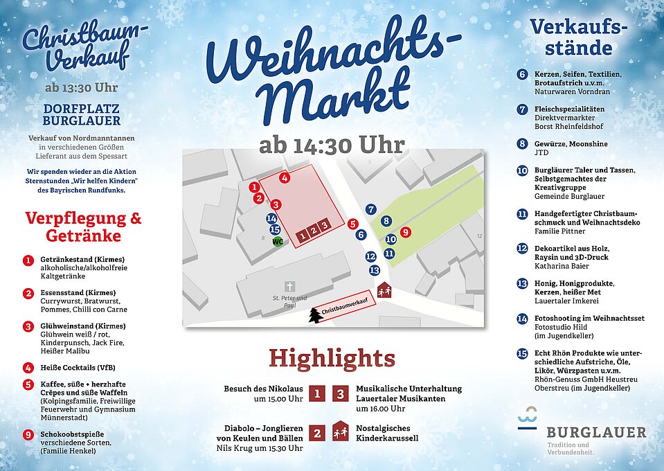 Burglauer, im schönen Lauertal gelegen, ist eine lebens- und liebenswerte Gemeinde im Landkreis Rhön-Grabfeld. Die Wohngemeinde mit seinen 1.750 Einwohnern ist besonders stolz auf die Tradition und Verbundenheit, die im Ort sehr gelebt wird. Äußerst aktives Vereinsleben, nicht nur im Sport, macht das Besondere an Burglauer aus. Zentral zu den Kreisstädten Bad Neustadt a. d. Saale und Bad Kissingen gelegen, hat Burglauer einen eigenen Bahnhaltepunkt sowie einen direkten Autobahnanschluss an die A 71 Richtung Erfurt bzw. Schweinfurt. Durch den Ort verläuft der Reichenbach, der nicht nur am Trauplatz zum Verweilen einlädt. Unsere Gemeinde bietet eine sehr gute Infrastruktur mit Kindergarten, Grundschule sowie einem Lebensmittelgeschäft mit Bäcker- und Wurstwaren. Die Arztpraxis, eine Pizzeria sowie viele Gewerbetreibende, vom Autohaus über Gartengestaltung bis zur Physiotherapie runden das Angebot für die Bürgerinnen und Bürger ab.