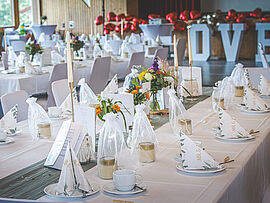 Die Rudi-Erhard-Halle ist Mittelpunkt des gemeindlichen Geschehens, Treffpunkt für die Bevölkerung und ein Ort der Entfaltung für die Vereine und Gruppierungen. Hier trifft man sich zum Sport, zur Kreativ- und Aktivgruppe, zum Austausch untereinander und zu kulturellen Veranstaltungen im kleinen wie im großen Kreis. Der große Saal, der Gastraum sowie der Biergarten werden für viele Feierlichkeiten genutzt: